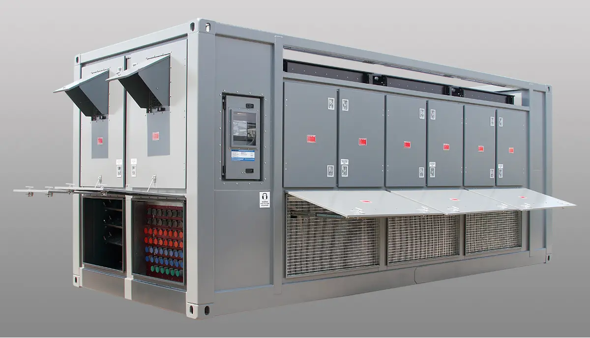 The Simplex Solar-5 is a very large capacity, resistive/inductive portable load bank capable of 0.8 power factor loads to 5.0MVA (4.0MW, 3.0MVAR). The Solar-5 is designed for low voltage application to 690vAC. PLC based digital load control with touchscreen operator interface is standard. The unit is network capable with other Solar Load Banks as well as most standard Simplex Load Banks in order to form large, ultra high capacity systems which can be controlled from a single operator interface with totalized data acquisition.